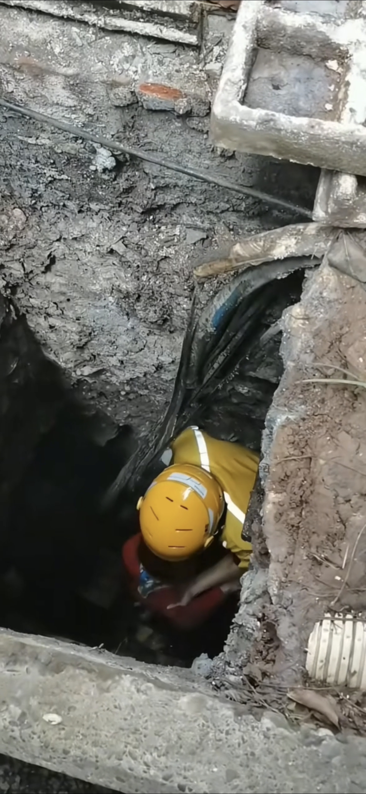 随即,在现场群众的协助下,先将被困井壁的家长拉了上来。紧接着,陈俊飞用手肘抵住两侧井壁,一点点向下挪动。“井壁上全是油污,滑得根本站不住。”他回忆,井内充斥着刺鼻的臭味,污水横流,井壁处破损的管道不仅边缘锋利,还不断向下滴水。