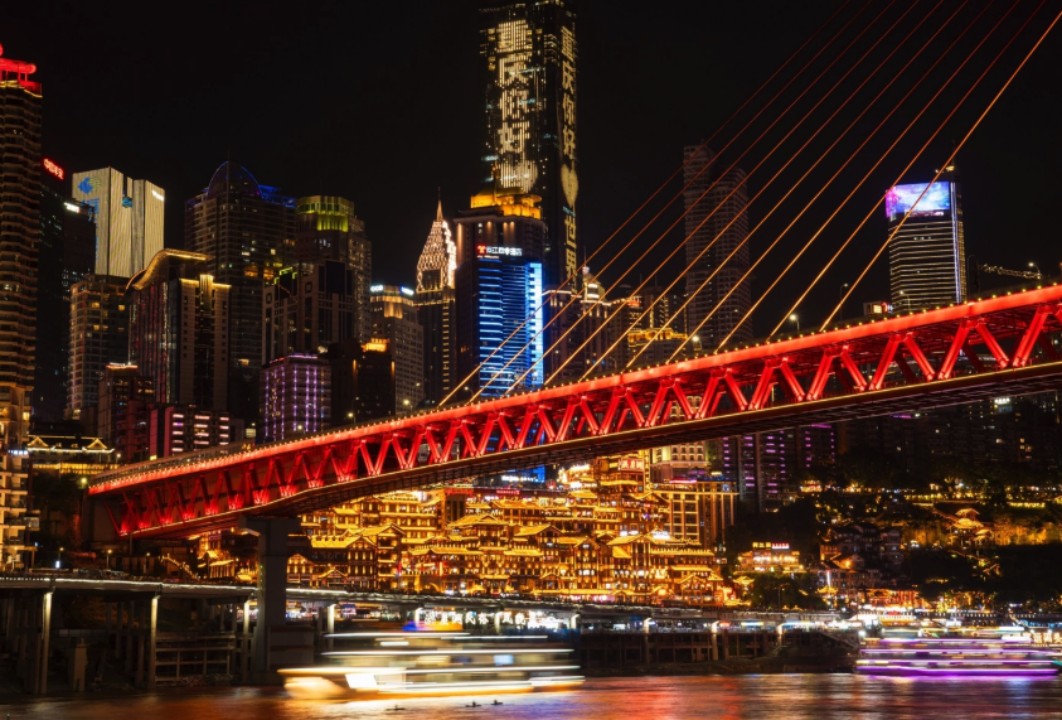 趁太阳还没完全下班,赶紧杀向长江索道。坐上这趟“空中公交车”,整个人悬在长江之上,两岸高楼如积木般错落排开——那一刻你会懂,为什么重庆被称为现实版的立体迷宫。等天彻底黑透,洪崖洞的灯光准时亮起,梦幻程度直接拉满。别挤在人堆里仰拍,聪明人都会溜到千厮门大桥上,远眺那一片灯火通明的吊脚楼群,妥妥的《千与千寻》现实复刻版!